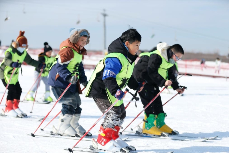 寒假期間,山東省青島市即墨區(qū)眾多中小學(xué)生走進(jìn)滑雪場,在專業(yè)老師的指導(dǎo)下學(xué)習(xí)滑雪,開展雪上游戲活動,在冰雪運動中增強(qiáng)體質(zhì),樂享假期。