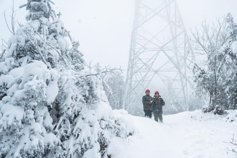 1月22日,國網長沙供電公司輸電檢修人員在瀏陽市蕉溪鎮(zhèn)蕉溪嶺巡查電力設施覆冰情況。新華社記者 陳思汗 攝