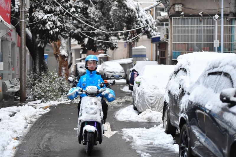 1月22日,長沙市天心區(qū)裕南街街道聯合外賣騎手志愿者為獨居老人免費送餐上門。新華社記者 陳澤國 攝