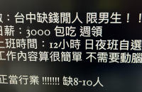 臺(tái)灣詐騙集團(tuán)在網(wǎng)絡(luò)上貼文征車手。(臺(tái)灣“中時(shí)新聞網(wǎng)”翻攝畫面)