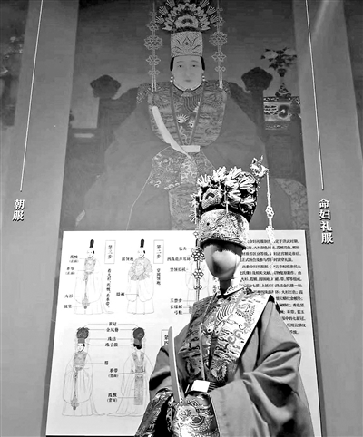 近日,由中國國家博物館主辦的“岐陽世澤——中國國家博物館藏李文忠家族文物展”在京開幕,展出館藏文物及明代復(fù)原服飾共計72件套,講述了明代開國功臣、岐陽武靖王李文忠家族在明清兩代的家族脈絡(luò)。展覽上,4套根據(jù)明代繪畫復(fù)原的明代服飾吸引了不少網(wǎng)友的關(guān)注。昨日,參與復(fù)原這些服飾的北京服裝學院漢唐服飾研究中心副主任陳詩宇接受北京青年報記者采訪時表示,服飾復(fù)原工作持續(xù)一年左右,“命婦禮服上的頭冠用了6000多顆珍珠,重達六七斤?!?/p>