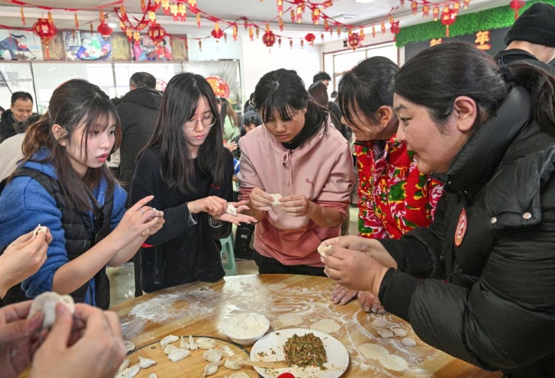 冬令營(yíng)營(yíng)員在吉林省舒蘭市二合村學(xué)包餃子(1月26日攝)。新華社記者 陳曄華 攝