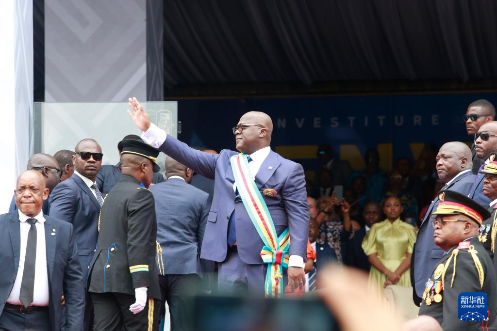 1月20日,剛果(金)當(dāng)選總統(tǒng)齊塞克迪(中)在首都金沙薩出席就職典禮。(圖源:新華社)