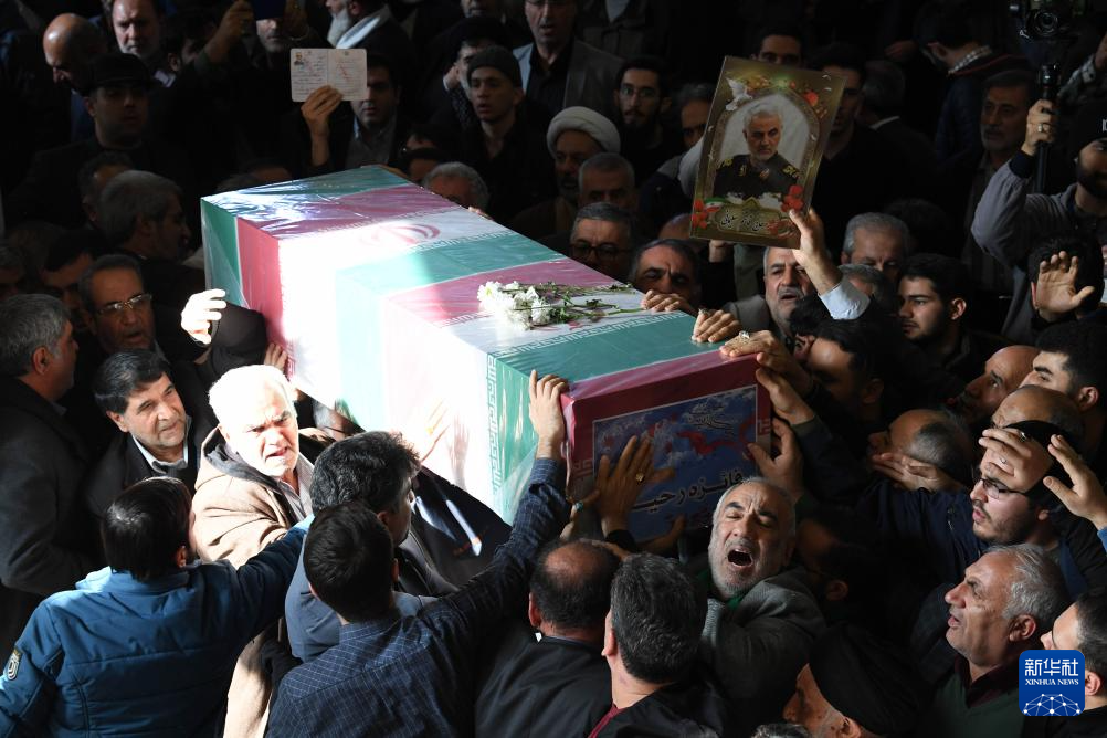1月5日,在伊朗德黑蘭,人們參加克爾曼市爆炸襲擊事件遇難者的葬禮。(圖源:新華社)