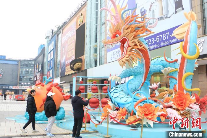 近日,重慶大街小巷各種以龍為主題的迎春燈飾陸續(xù)“上線”,迎接即將到來(lái)的農(nóng)歷龍年春節(jié)。傳統(tǒng)圖騰和現(xiàn)代藝術(shù)結(jié)合的“波普游龍”燈飾,青花瓷造型的龍形燈飾……記者在現(xiàn)場(chǎng)看到,以“龍”為靈感,融合現(xiàn)代藝術(shù)設(shè)計(jì)的各類“龍”形裝置,將龍年新春的“祥瑞”送達(dá)重慶。