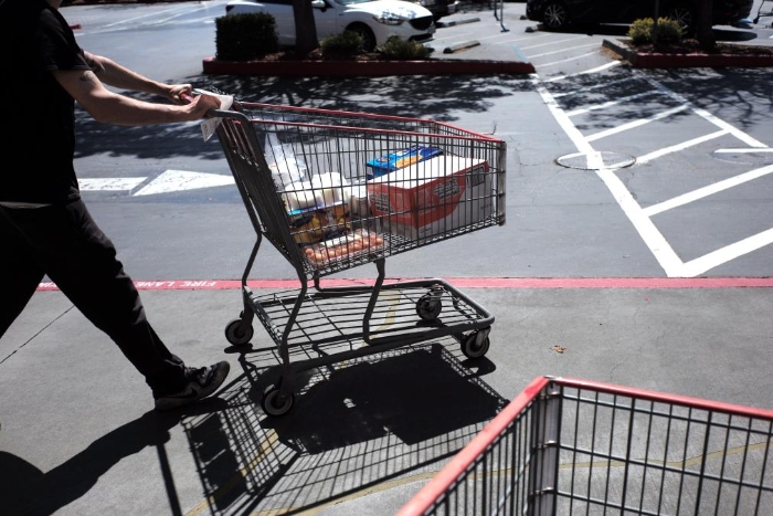 圖為2021年5月4日,顧客在美國加利福尼亞州北部舊金山灣區(qū)的一家超市購物。(新華社記者吳曉凌攝)