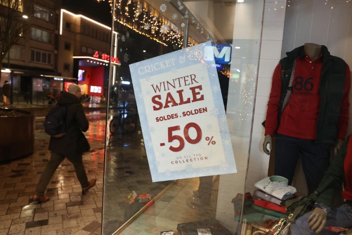 1月5日,在比利時布魯塞爾,行人從一家商店前走過。新華社記者趙丁喆攝