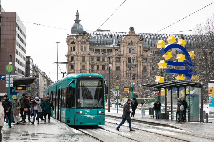 1月18日,在德國法蘭克福,人們在雪后出行。新華社記者張帆攝