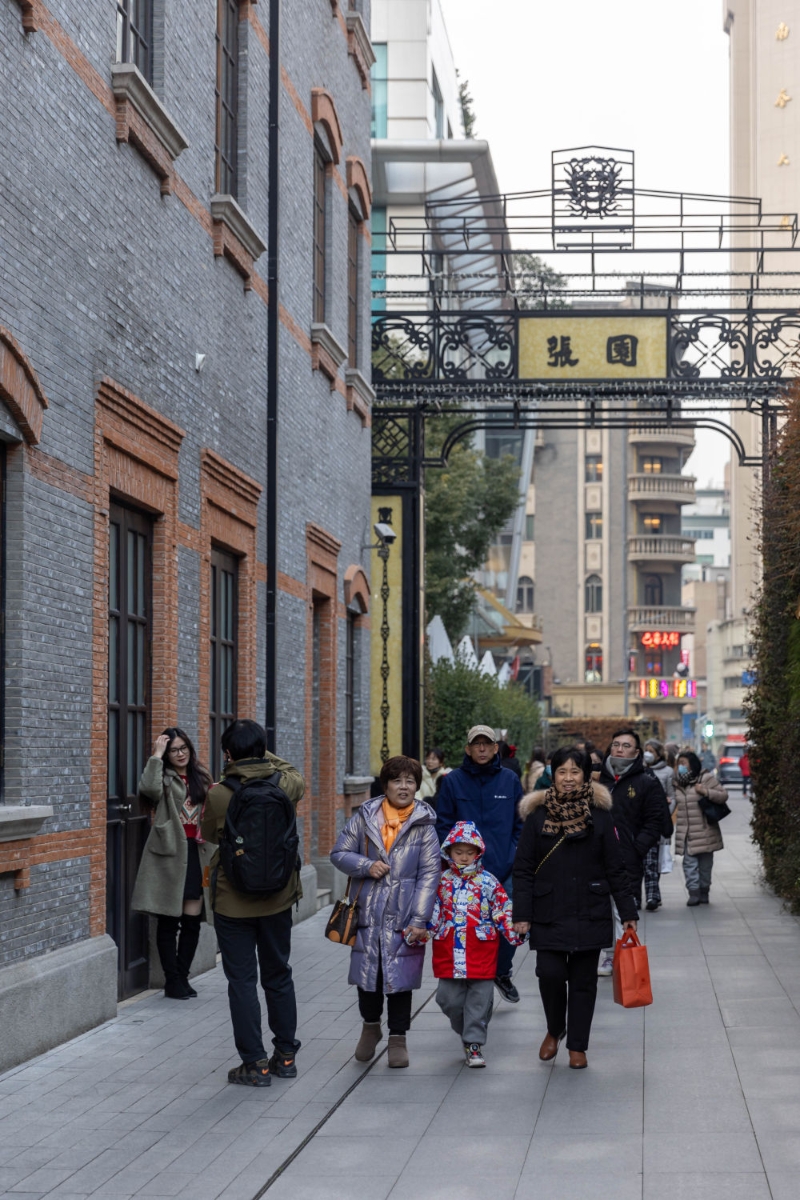 1月27日,人們走在位于上海市靜安區(qū)的張園。新華社記者 王翔 攝