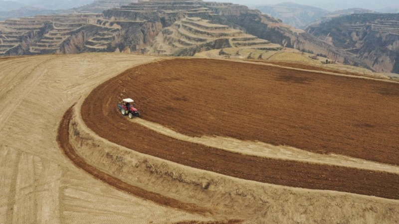 在臨汾市永和縣的一條龍農(nóng)機專業(yè)合作社聯(lián)合社里,農(nóng)機手們正在進行有機旱作農(nóng)業(yè)的技術(shù)和安全培訓(xùn),為即將到來的春耕做準備?!拔覀兺茝V了玉米歸壟、果園覆草、高粱覆膜播種一體化和探墑播種等一系列技術(shù),夯實穩(wěn)糧保供基礎(chǔ)?!庇篮涂h現(xiàn)代農(nóng)業(yè)發(fā)展中心主任田華說,永和是典型的黃土高原梁峁殘垣溝壑區(qū),永和梯田作為華北地區(qū)最大的旱作梯田區(qū)域,起到了積極的示范作用。