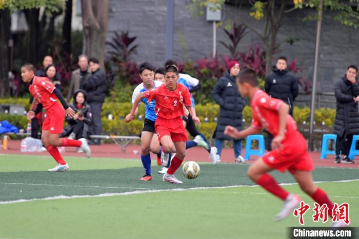2月2日,兩岸青少年在福州金山中學的綠茵場上切磋球技。 (福州市臺聯(lián) 供圖)