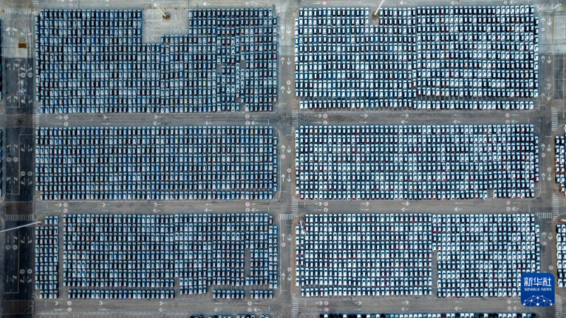 2月3日,汽車整齊排列在天津港海嘉滾裝碼頭(無人機照片)。