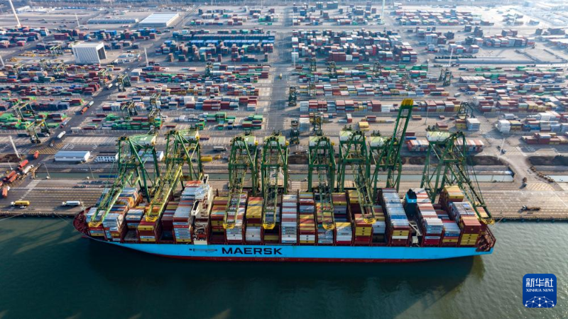 這是2月3日拍攝的天津港集裝箱碼頭(無人機照片)。