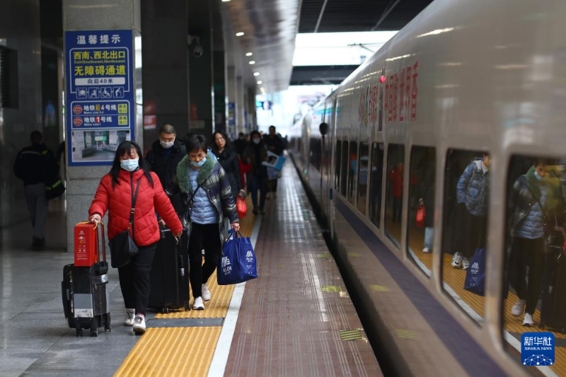 2月4日,舒城籍務(wù)工人員準(zhǔn)備登乘G9284次列車,返鄉(xiāng)過年。