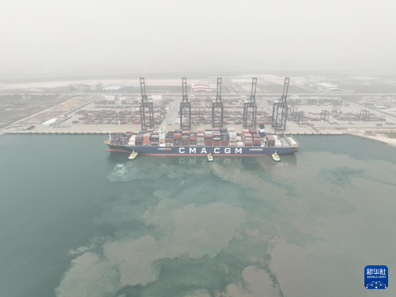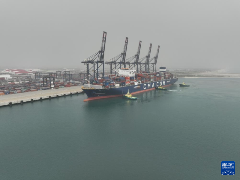 1月29日,法國達飛海運集團一艘大型集裝箱貨輪緩慢停靠在尼日利亞拉各斯州萊基港。
