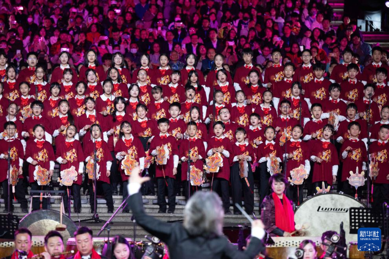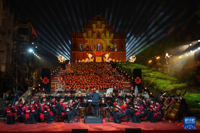 當日,2024年“歡樂春節(jié)”啟動儀式暨“歡樂春節(jié) 春滿濠江”音樂會在澳門大三巴牌坊前舉行。