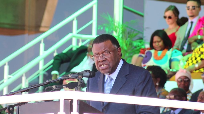 圖為2019年3月21日,在納米比亞溫得和克,納米比亞總統(tǒng)根哥布在獨立日慶典上講話。新華社發(fā)