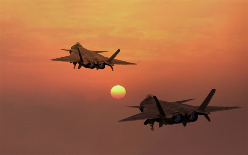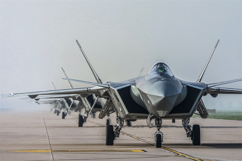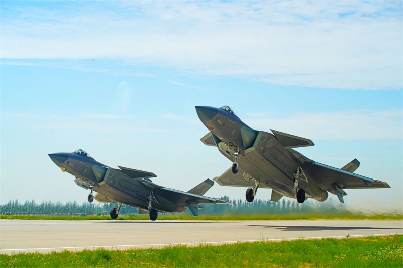 空軍航空兵某旅飛行一大隊(duì)飛行員駕駛殲-20戰(zhàn)機(jī)編隊(duì)起飛(2022年7月17日攝)。新華社發(fā)(王鴻飛 攝)