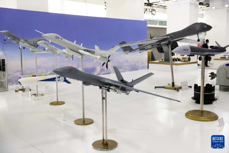 這是2月5日在沙特阿拉伯利雅得拍攝的防務(wù)展上的無人機模型。新華社記者 王東震 攝