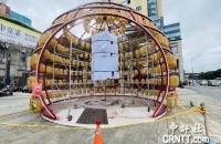 位在臺(tái)北市北門(mén)展區(qū)的上海燈飾正在布置中,17日將亮相。(圖片來(lái)源:香港“中評(píng)社” 張穎齊攝)