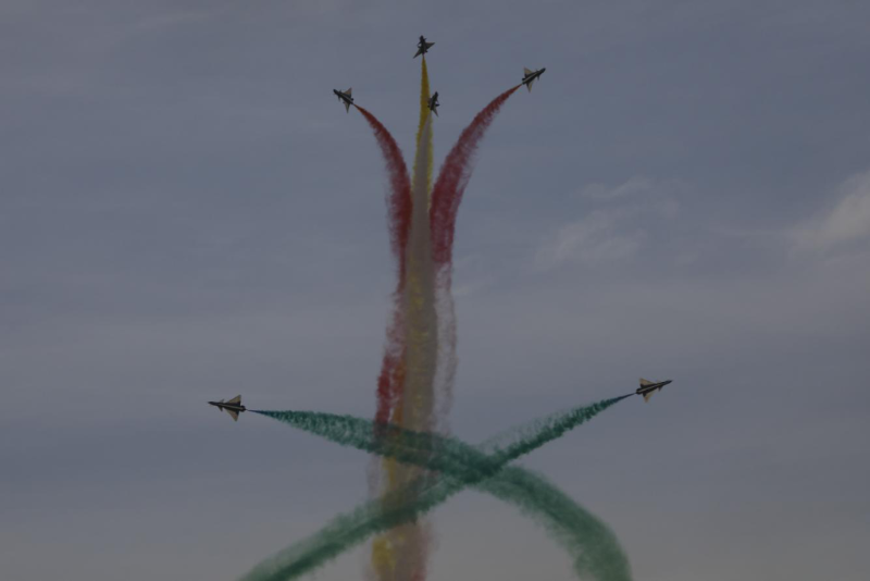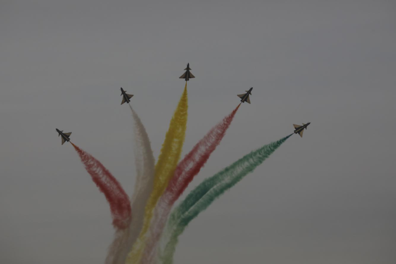 沙特利雅得當(dāng)?shù)貢r(shí)間2月5日16時(shí)40分許,空軍八一飛行表演隊(duì)迎來(lái)第二屆沙特國(guó)際防務(wù)展首場(chǎng)正式飛行表演。機(jī)場(chǎng)上空,隊(duì)員們駕馭殲-10表演機(jī)以高難的驚險(xiǎn)動(dòng)作、高超的飛行技藝,在異國(guó)他鄉(xiāng)為來(lái)自世界各地的萬(wàn)余名觀眾帶來(lái)一場(chǎng)精彩表演。