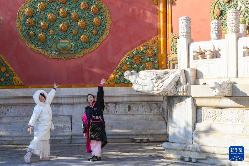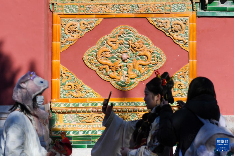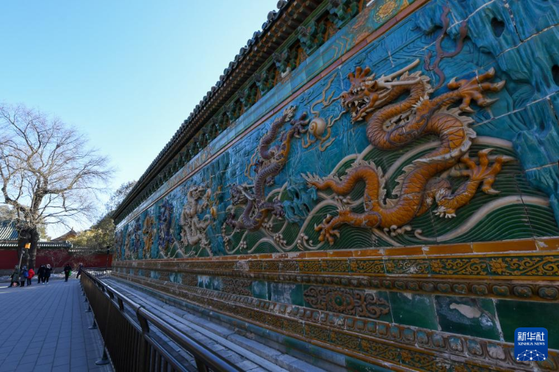 這是在北海公園內(nèi)拍攝的九龍壁(1月24日攝)。