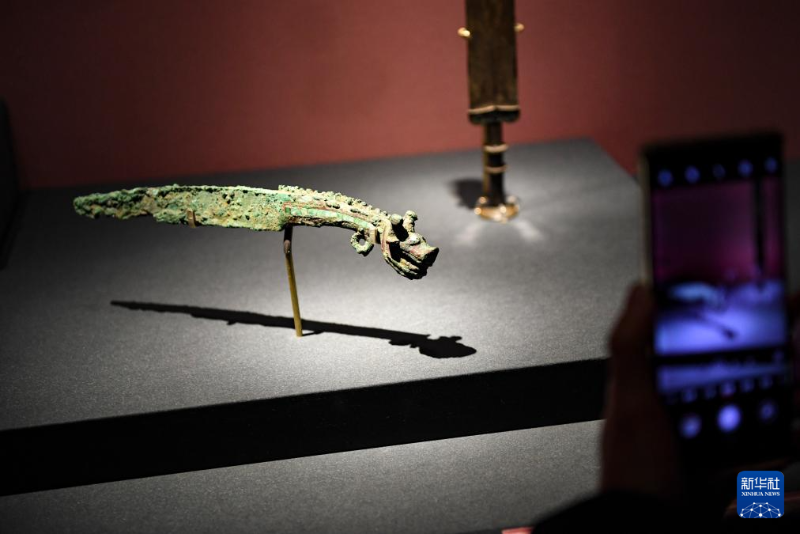 這是在故宮博物院“歷史之遇——中國與西亞古代文明交流展” 展出的龍首短刀(1月28日攝)。