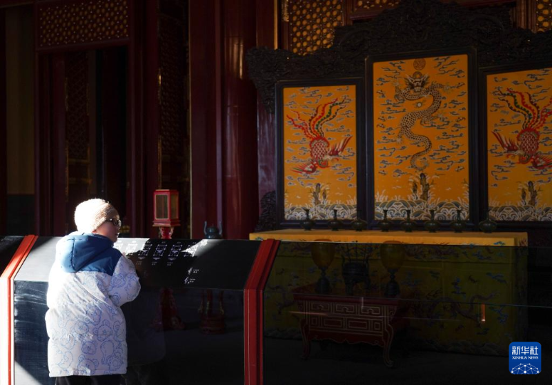 游客在故宮鐘粹宮觀看編鐘(1月28日)。