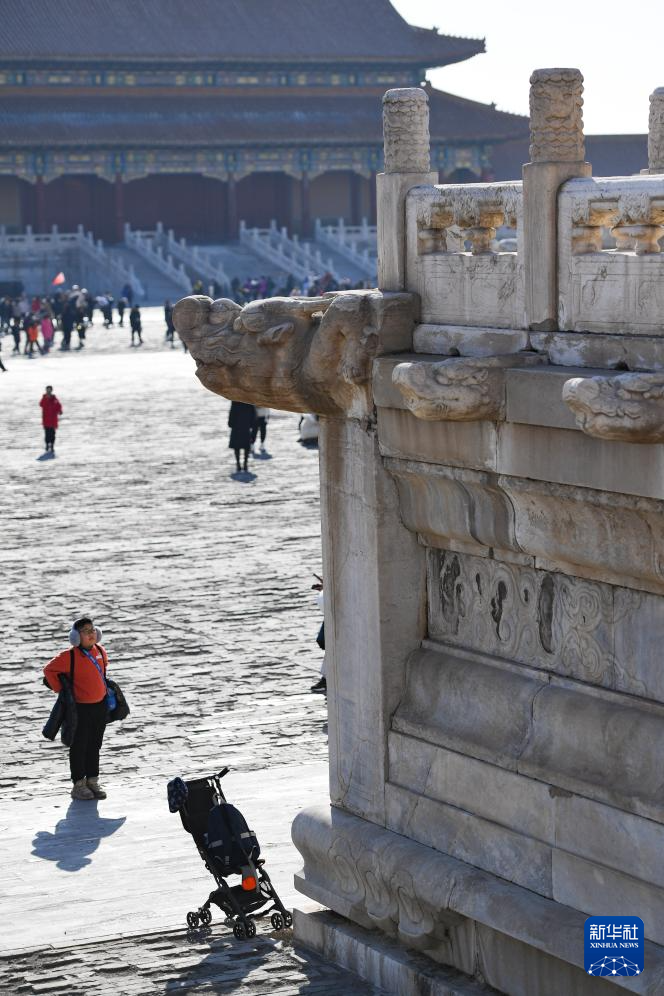 這是故宮文華殿院內(nèi)一座雕有神獸“蚣蝮”的橋(1月28日攝)。在神話傳說中,蚣蝮是龍生的九子之一。