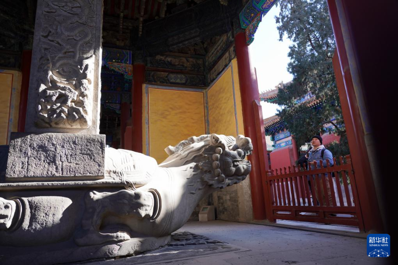游客在參觀北京孔廟內(nèi)的一座石碑,石碑下是神話傳說中龍生的九子之一“霸下”(1月21日攝)。北京孔廟位于北京中軸線緩沖區(qū)內(nèi)。