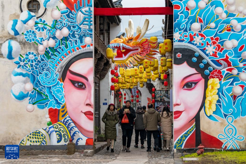 2月5日,游客在浙江省金華市金東區(qū)嶺下鎮(zhèn)坡陽(yáng)古街游覽。
