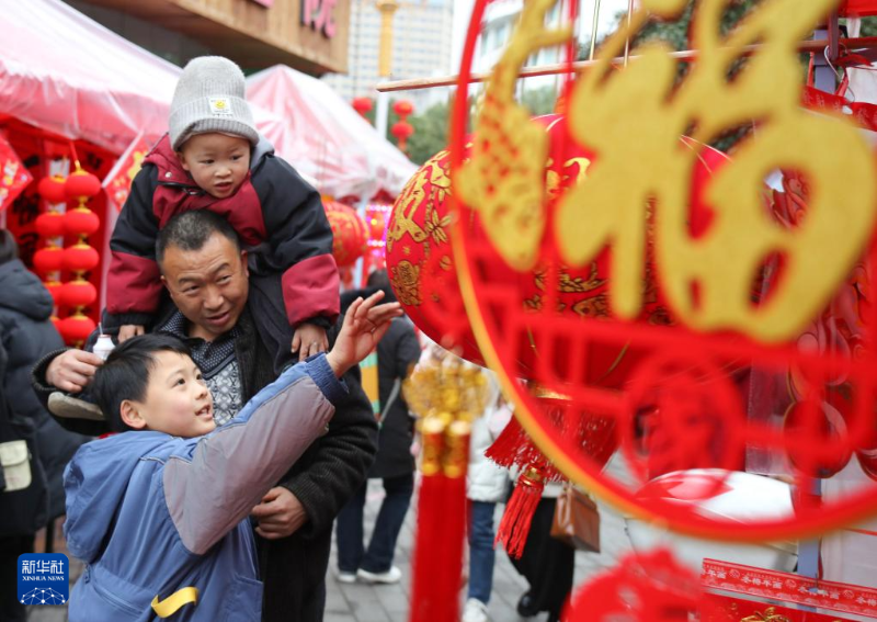 2月5日,人們?cè)谫F州省黔東南苗族侗族自治州施秉縣城年貨集市上選購(gòu)新春飾品。