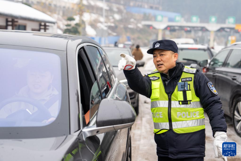 2月6日,在湖南長(zhǎng)張高速慈利東收費(fèi)站附近,交警解答滯留旅客的提問(wèn)。新華社記者 陳思汗 攝