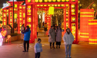 2月7日,居民在重慶市南川區(qū)鼓樓廣場年貨市場選購節(jié)慶飾品。
