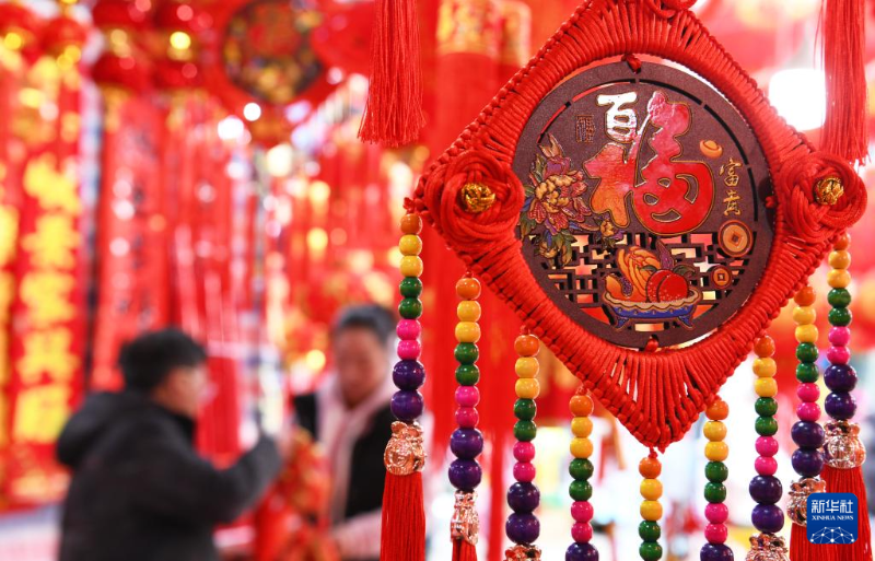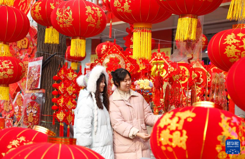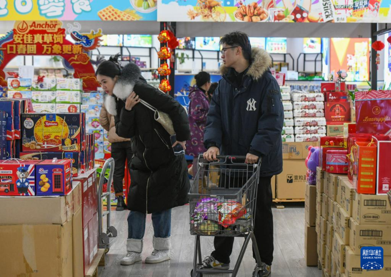 春節(jié)臨近年味濃,人們采買年貨迎佳節(jié)。