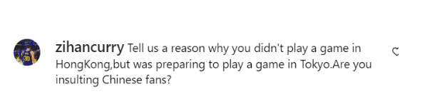 還有人直接質(zhì)問,“告訴我們?yōu)槭裁茨銢]有在香港比賽,但卻準(zhǔn)備在東京上場。你是在侮辱中國球迷嗎?”↓
