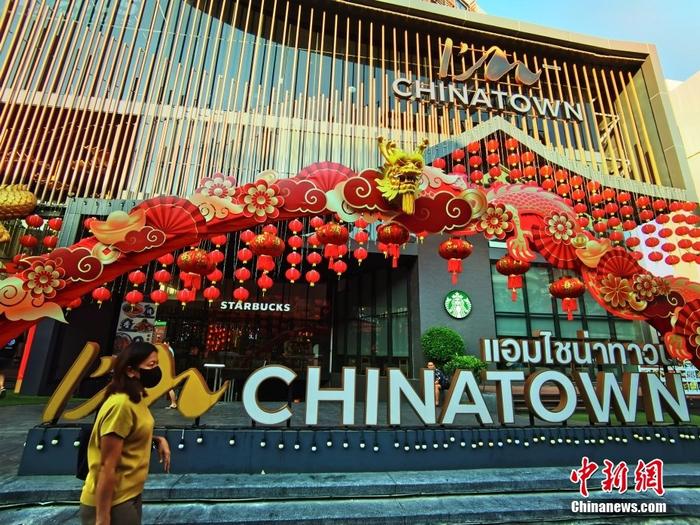 當(dāng)?shù)貢r間2月5日,一名行人從曼谷唐人街中國城門口經(jīng)過。甲辰龍年春節(jié)臨近,曼谷唐人街的中國年味漸濃,春節(jié)節(jié)慶的中式裝飾隨處可見。中新社記者 李映民 攝