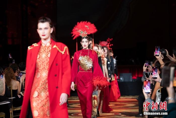 當(dāng)?shù)貢r間1月26日,中國中央廣播電視總臺“春晚序曲”活動美國專場在紐約舉行,活動以“過中國春節(jié),看總臺春晚”為主題,以春節(jié)文化為紐帶促進國際人文交流,推動文明互鑒。圖為“青青國風(fēng)”時裝秀表演。中新社記者 廖攀 攝