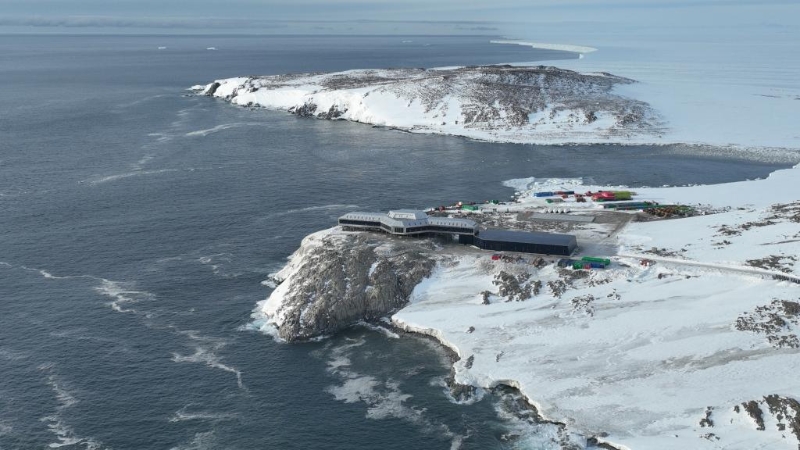 ↑2024年2月6日拍攝的中國(guó)南極秦嶺站。