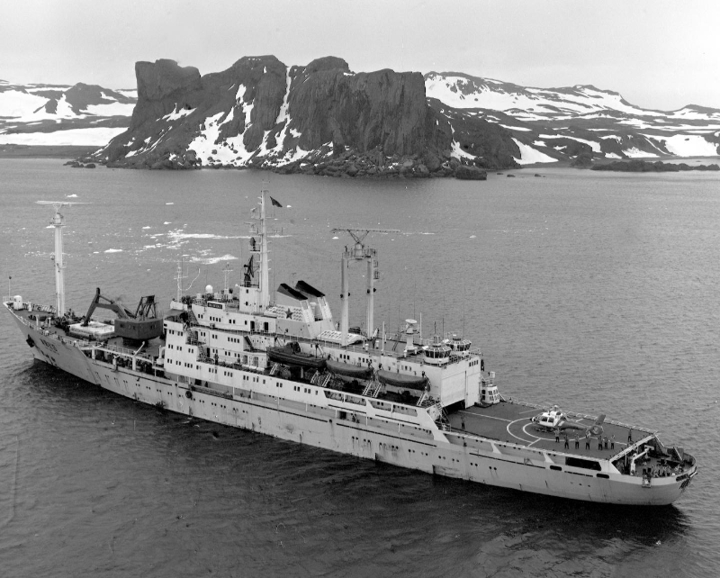 ↑中國(guó)南極考察船隊(duì)于1984年12月26日勝利駛抵南極洲喬治王島民防灣。這是“向陽(yáng)紅10號(hào)”科學(xué)考察船。