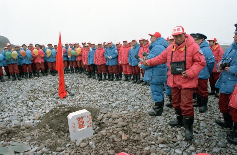 ↑1984年12月31日中國(guó)南極長(zhǎng)城站舉行奠基典禮。