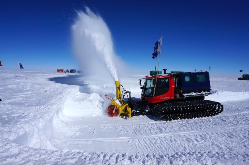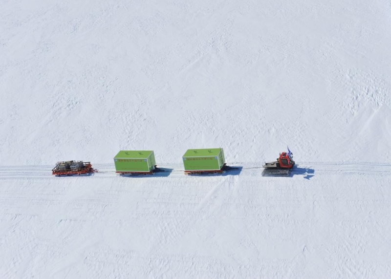↑2008年12月18日,中國(guó)第25次南極科考隊(duì)內(nèi)陸隊(duì)從中山站出發(fā),前往南極冰穹A地區(qū)。圖為行進(jìn)中的雪地車。