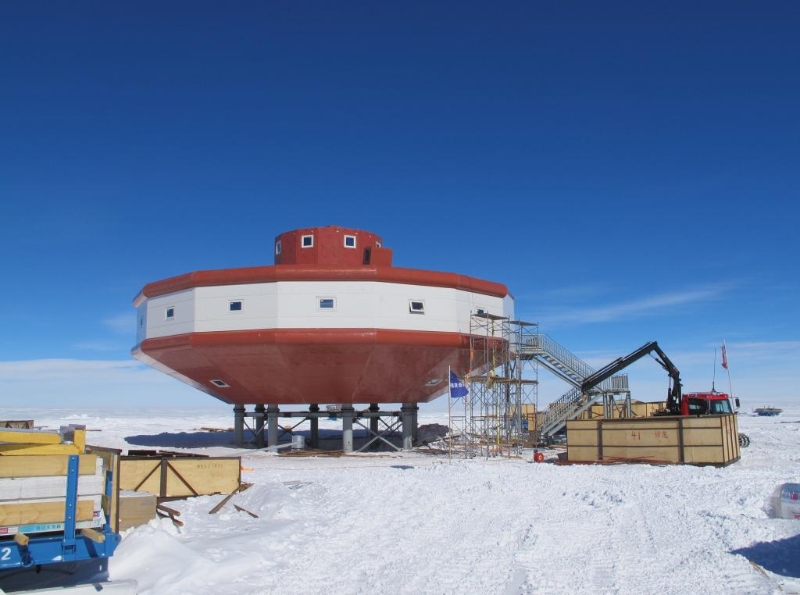↑2013年12月26日,中國(guó)南極泰山站正式開(kāi)工建設(shè)。