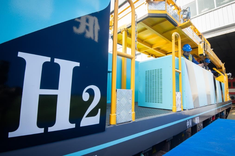 這是2023年7月18日拍攝的由中鐵武漢電氣化局研制的氫能源地鐵施工作業(yè)車。新華社記者肖藝九攝