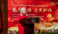 當(dāng)?shù)貢r(shí)間2月10日晚間,巴西伊瓜蘇瀑布城,中國駐巴西使館、中國駐圣保羅總領(lǐng)館和巴西伊瓜蘇市政府聯(lián)合主辦“歡樂春節(jié)——瀑布城喜迎中國龍年”文藝表演活動(dòng),在舉世聞名的伊瓜蘇瀑布前啟幕。圖為巴西伊瓜蘇市議員莫拉雷斯(前左)接受澳門小演員龍紫嵐(前右)代表澳門培正中學(xué)藝術(shù)團(tuán)贈(zèng)送的紀(jì)念品。