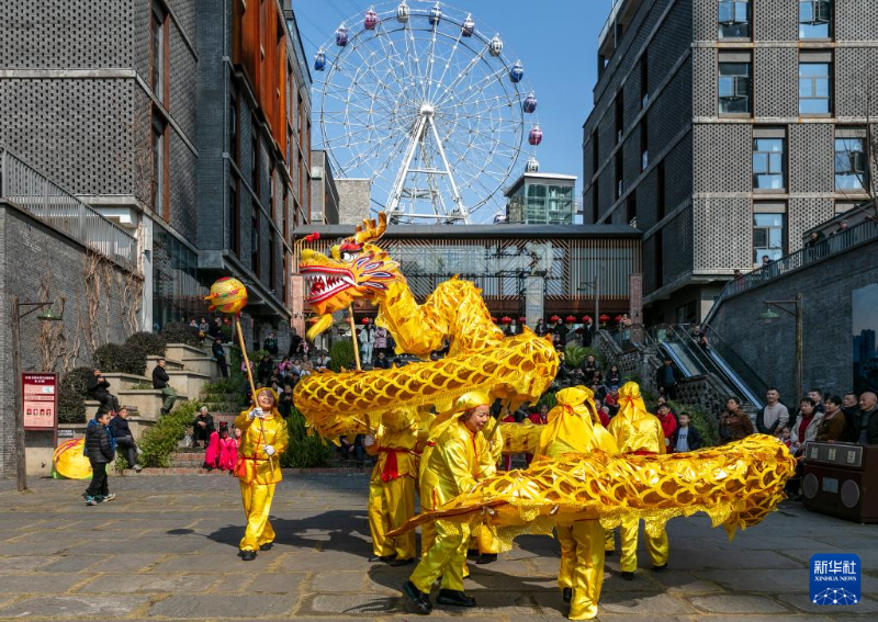 2月12日,市民在重慶市南川區(qū)東街古鎮(zhèn)觀看舞龍表演。