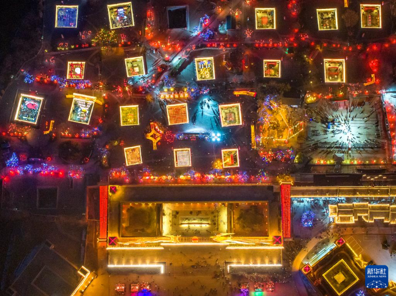 2月12日拍攝的河南三門峽陜州地坑院龍年燈會(huì)(無人機(jī)照片)。