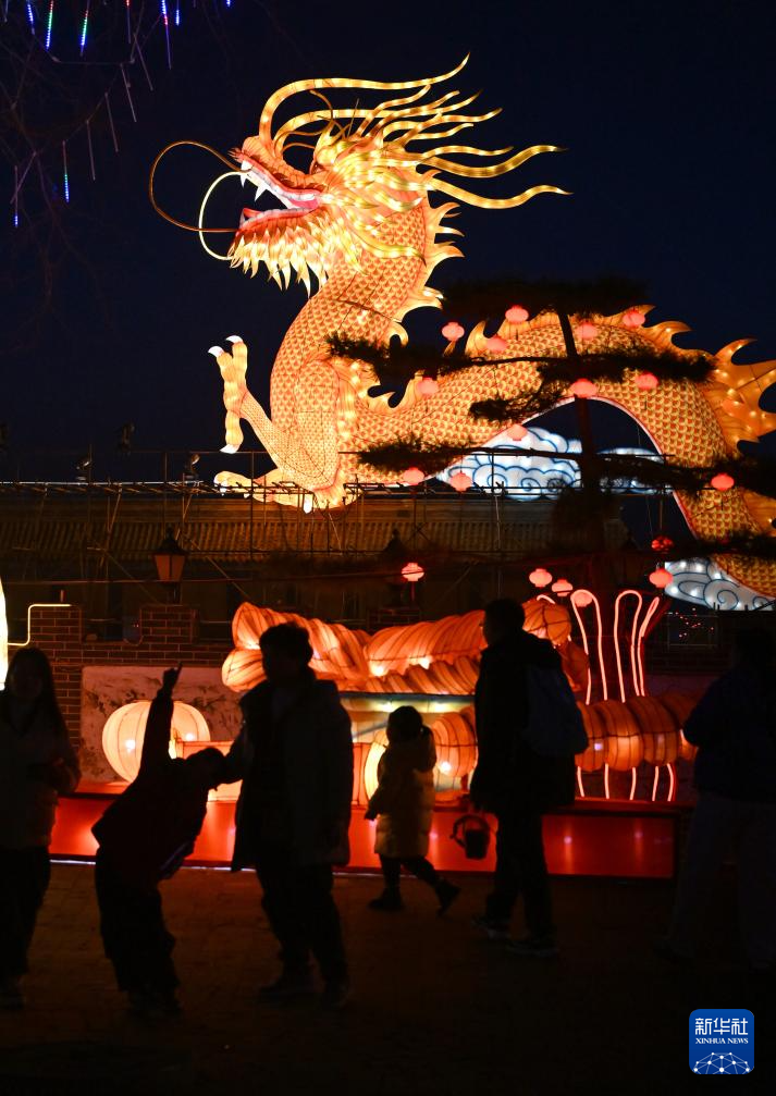 2月12日,游客在河南三門峽陜州地坑院龍年燈會(huì)上參觀游園。