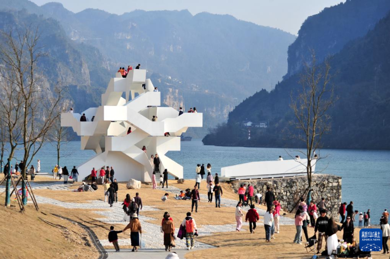 2月17日,游客在湖北省宜昌市夷陵區(qū)樂天溪鎮(zhèn)的蓮沱畔公園里欣賞長江西陵峽風景。