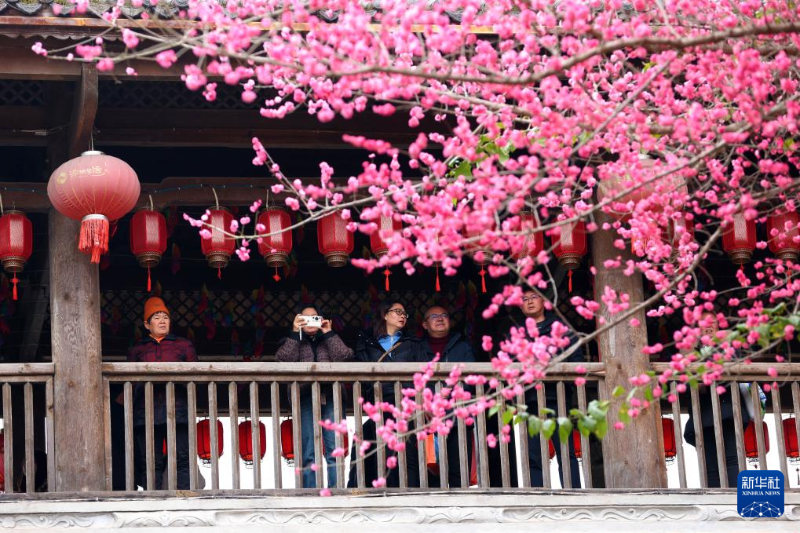 2月17日,游客在重慶市黔江區(qū)濯水古鎮(zhèn)賞梅。